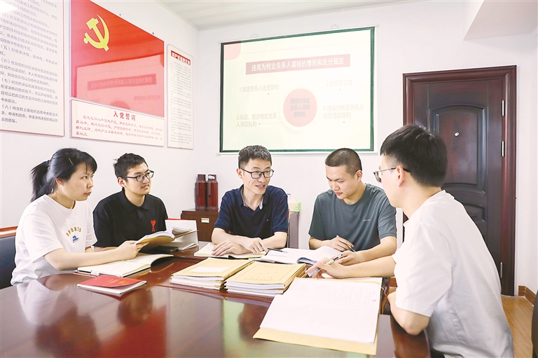 浙江省浦江县纪委监委严肃查处利用职权为特定关系人谋利问题,对照《条例》规定认真分析研判相关违纪违法行为,切实提升执纪执法工作精准性。图为该县纪检监察干部集中讨论相关案件。洪小岚 摄