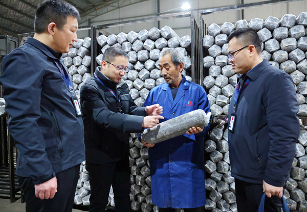 图为近日,山西省垣曲县纪检监察干部在当地特色农产品加工厂了解惠农政策落实情况。杨娜娜 摄