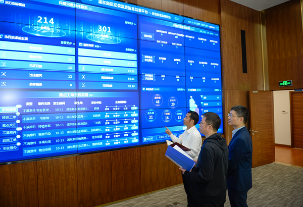 上海市浦东新区以“互联网+监督”支撑保障跟进监督、精准监督,护航重点项目建设。图为该区纪委监委干部通过“智慧监督”平台对群众反映问题开展监督分析研判。 刘思弘 摄