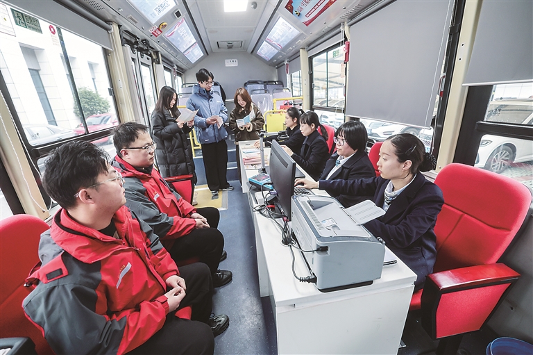 浙江省嘉兴市通过建立涉企问题诉求高效解决通道等举措,精准高效解决企业诉求。图为南湖区政务服务大篷车来到某企业提供政策咨询服务。 新华社发
