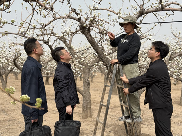 河南省巩义市纪委监委统筹“室组地”力量,对农村集体“三资”管理情况进行交叉监督检查,深挖细查群众身边的不正之风和腐败问题线索。图为该市纪委监委工作人员在果园基地走访了解相关情况。曹钰蕾 摄