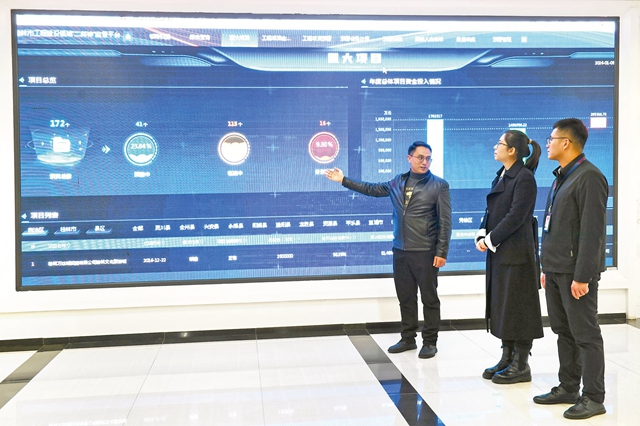 广西壮族自治区桂林市纪委监委研发工程建设领域监督平台,通过对信息开展关联比对、穿透式分析等方式实现实时预警。图为该市纪检监察干部利用平台对重大项目廉政风险点进行筛查研判。 李玉洁 摄